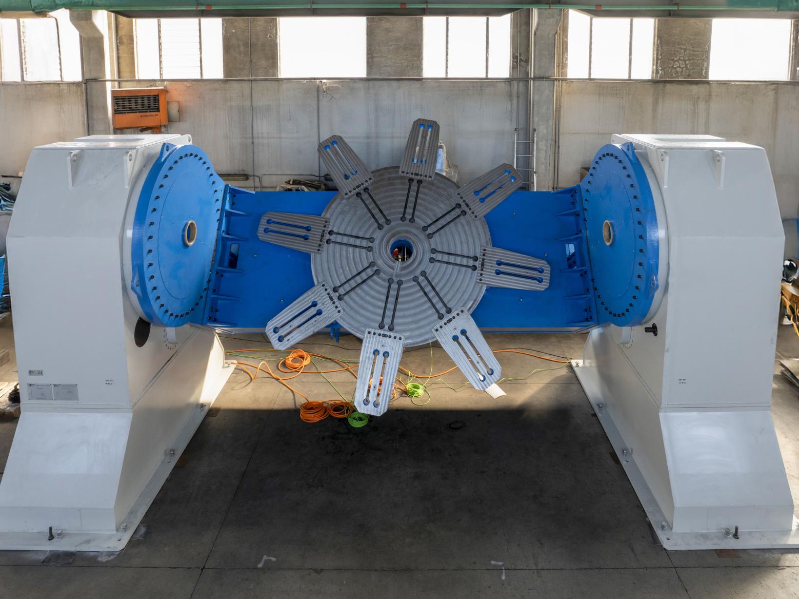 Orbital positioner integrated in robotized cell with capacity load 7 tons.